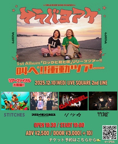 ツアーファイナル大阪編 が行われていました。( 出演予定だった リツカ は、メンバーのインフルエンザ罹患によりキャンセル ) ライブを見たのは・・リツカ の代わりにトリ前を任された フクスイボンニカエス ~ サラバヨアケ の2バンド。
