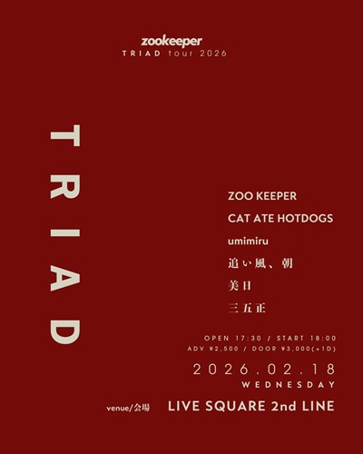 閉店後は、2ndLINEで行われている ZOO KEEPER pre. 1st E.P.”TRIAD” Release Tour〜2nd LINE編〜 を見に行く。 今回 ZOO KEEPER の1stEP「 TRIAD 」のジャケレイアウト+CDプレスでお手伝いさせてもらってたのですが、メールだけでのやり取りで進めていたので、メンバーへの挨拶も兼ねてライブを見に行きました! ライブを見たのは・・ CAT ATE HOTDOGS ~ 追い風、朝 ~ ZOO KEEPER の3バンド